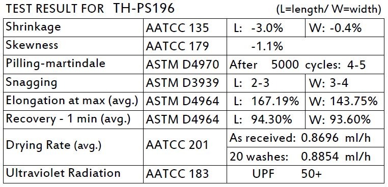 Material | 58.6%Degradable Polyester 30.3%Polypropylene 11.1%Spandex |