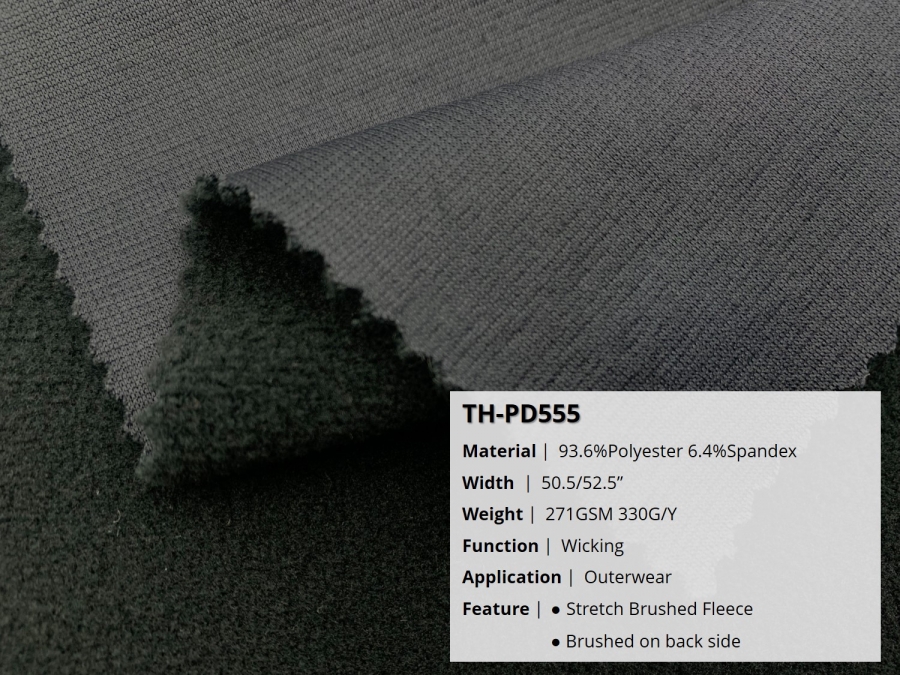 Feature | ● Stretch Brushed Fleece ● Brushed on back side |
